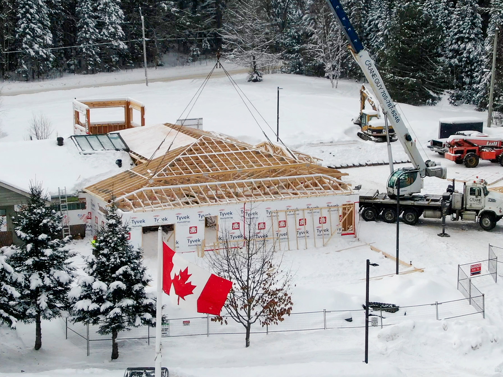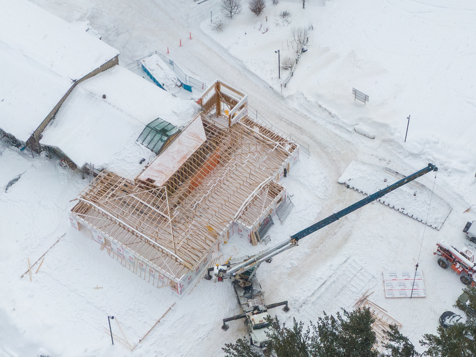 Winter hasn’t slowed things down at the Dwight Community Centre and Library expansion project. If you have driven past the site recently, you have likely noticed a major change. The new library wing now has its full roof structure framed in, and the exterior walls are standing, clearly defining the footprint of the three thousand square foot addition on the west side of the building.